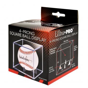 2-piece holder with a slide-in bevel closure safely protects and displays 1 baseball. Ultra clear with built-in 4-prong stand to hold ball in place. (Ball not included)